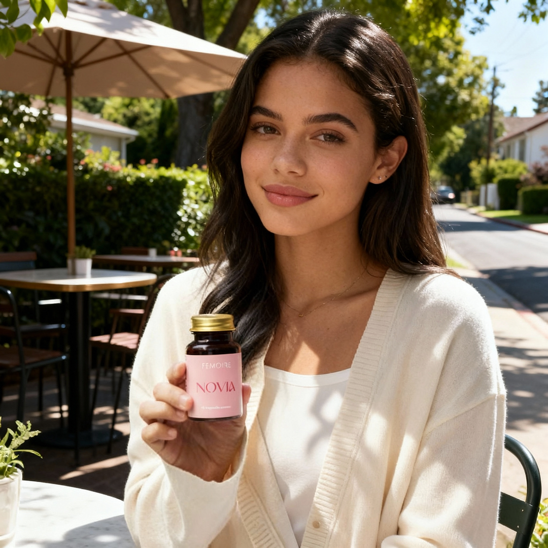 Novia is a plant-based supplement designed to help women in their reproductive years find balance and calm during hormonal fluctuations. It works naturally to reduce PMS discomfort, stabilize mood, and improve skin clarity.